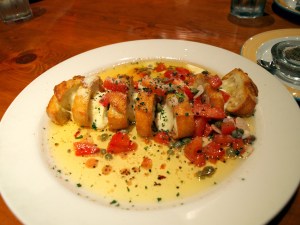 Dinner on night two was provided by the Twisted Fish Steakhouse. We were treated to appetizers and once again allowed to order from the menu. I had been jonesing for seafood for quite sometime, and picked this moment in time to get my fix. I chose a dinner consisting of lobster, scallops, and grilled salmon, accompanied by seasonal veggies and scalloped potatoes. I raise my glass to you Chef Jake Burden. That meal, and the brownie the size of my head that I was served for dessert, were both very much on point.