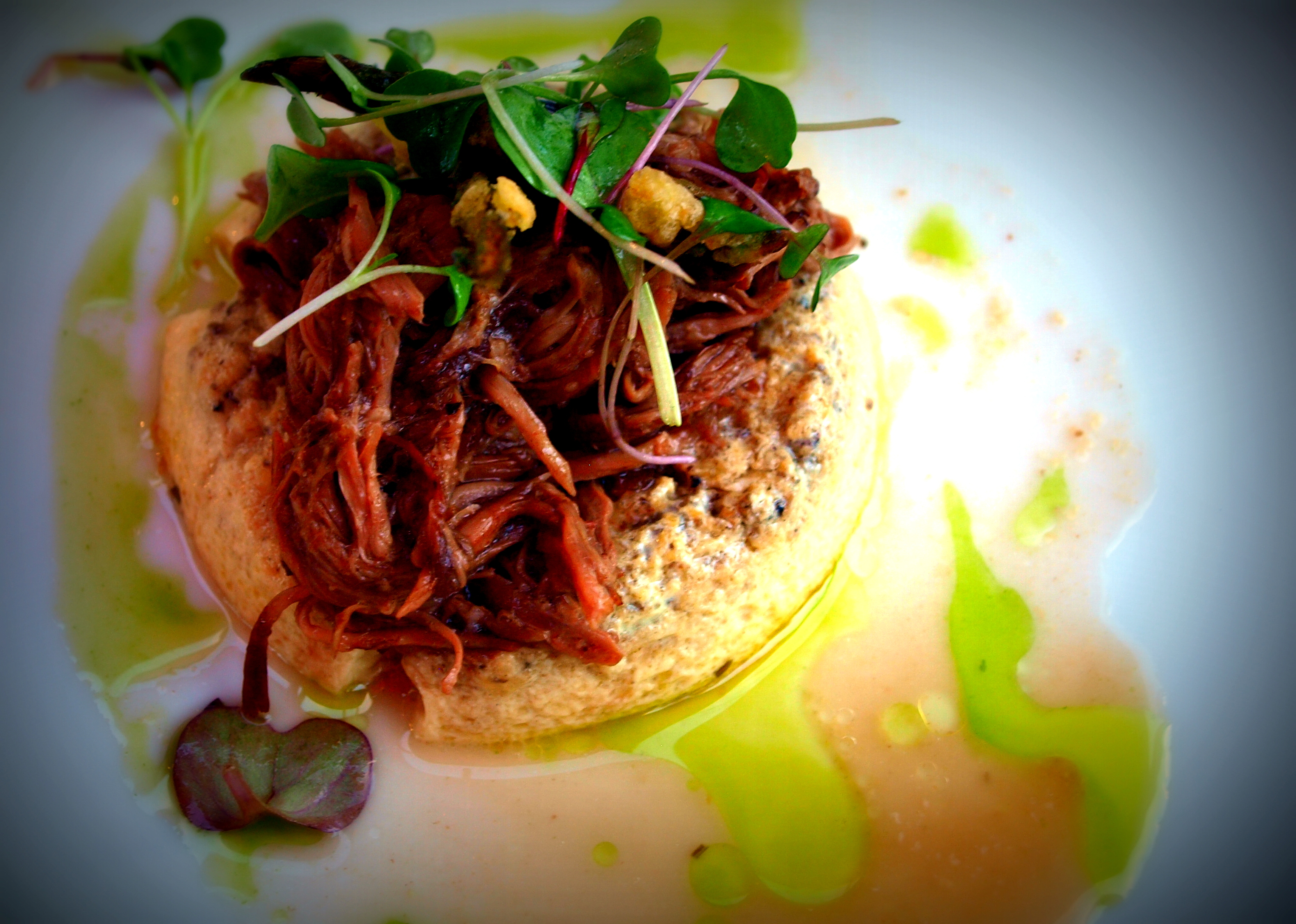 The dinner started with Mizuna Gardens baby greens. Presented with spring onions, Dissident dried cherries, truffle tremor, late harvest sauvignon blanc vinaigrette, and duck confit. The salad was paired with The Dissident from Deschutes; 100% aged in a French pinot barrel from Domaine Drouhin. Yep, that just happened. The salad and beer where respectively magnificent, but their pairing set the tone for the evening.