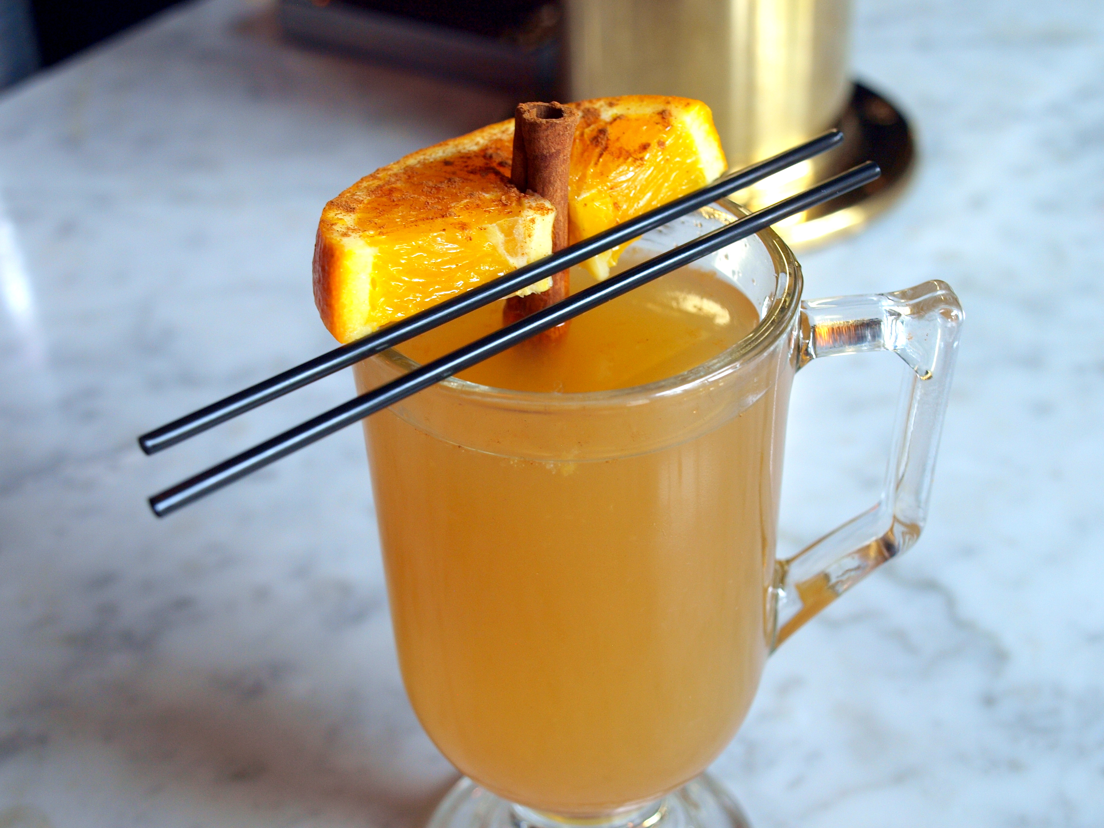 Not to be outdone, Erin whipped up two cold weather drinks that were originally created by some of John’s old bartender friends. The Nana’s Nip, which has ginger juice, lemon juice, Laird’s Apple Jack, and hot water, was sweet and flavorful. And the last drink of the evening, the Oh Fidel, You Cad!, was as delicious and gut-warming as its name is creative and giggle-worthy. Comprised of a healthy dose of rum, Falernum, lemon juice, and hot water, the Oh Fidel was the perfect capper for the evening.