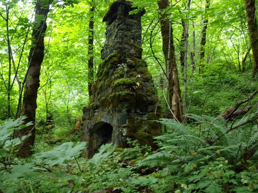 6 06 2011The Multnomah Lodge at the base of Mist Falls burned down in 1929. The fireplace for the lodge remains, though the forest is slowly reclaiming it. You can still see it from the Historic Highway, but you’d better have a sharp eye.