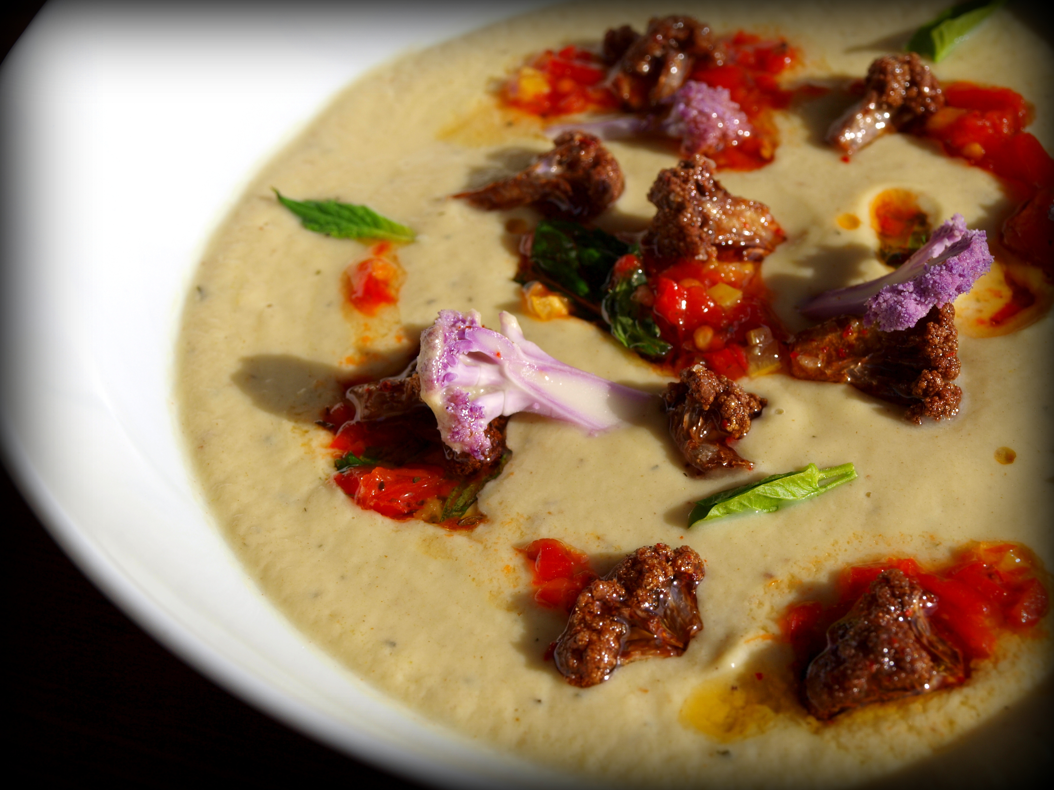 My latest soup review for What’s the Soup? took me to Levant in Portland, Oregon. Chef-owner Scott Snyder creates inspired French-Arabesque dishes, like the Cauliflower & Tahini, with Fried Purple Cauliflower, Spicy Pepper & Mint Relish. From the article: